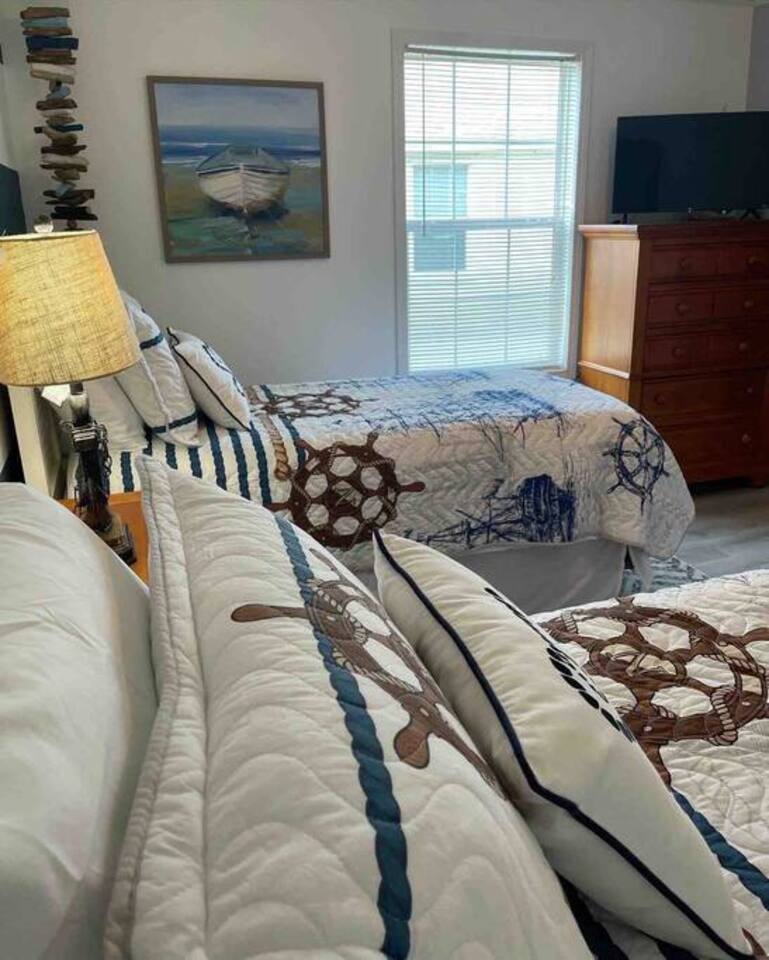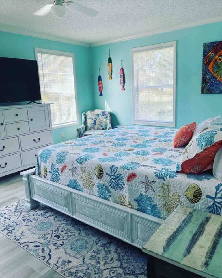 Welcome to The Boat House, our spacious beach-themed retreat, adorned with vibrant and fun coastal decor. This comfortable home features three nautical-themed bedrooms, perfect for families or couples seeking a relaxed and inviting getaway. Situated at the end of a quiet dead-end street, we own all three properties here, ensuring a peaceful and private experience. Traveling with a large family or friends? You can rent all three of our homes: The Beach House, The Beach Shack, or The Boat House. Our prime location is ideal for exploring the highlights of Fort Myers. We are centrally located between Fort Myers Beach and Sanibel, just 6 miles from both. Cape Coral is also a short 6-mile drive, and the historic downtown district of Fort Myers is only 10 miles away. You'll enjoy being close to a variety of dining options, including seafood restaurants, pizza places, and other local favorites. For those flying in, the airport is conveniently located just 25 minutes away. Each room in our home is thoughtfully furnished with cozy nautical-themed decor, creating a warm and welcoming atmosphere. We have personally lived in each of these three homes, setting them up as vacation rentals so our guests can thoroughly enjoy their stay. As real estate agents with eXp Realty, if you fall in love with the area—and we're sure you will—we can help you find a charming place to call home or the perfect vacation home. Come and experience the best of Fort Myers in The Boat House, where relaxation and adventure await you.