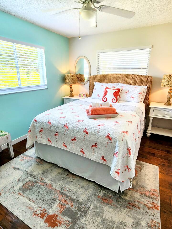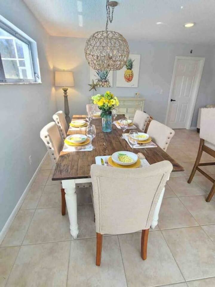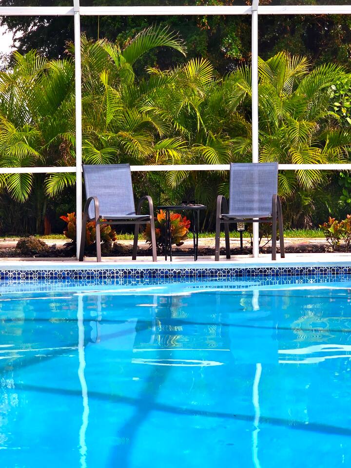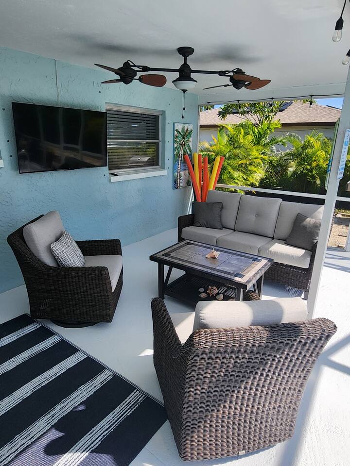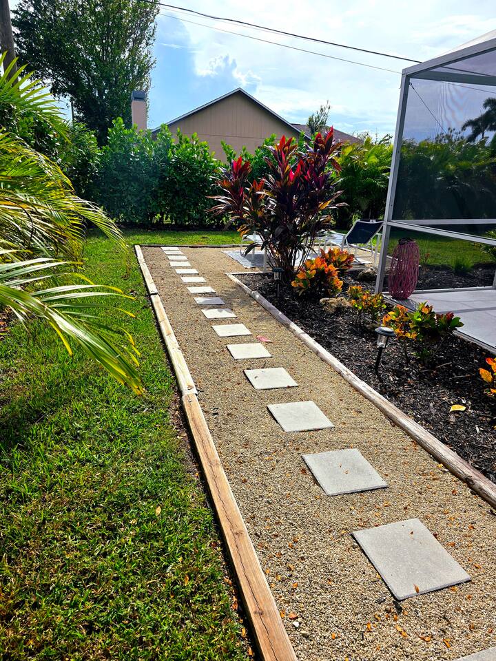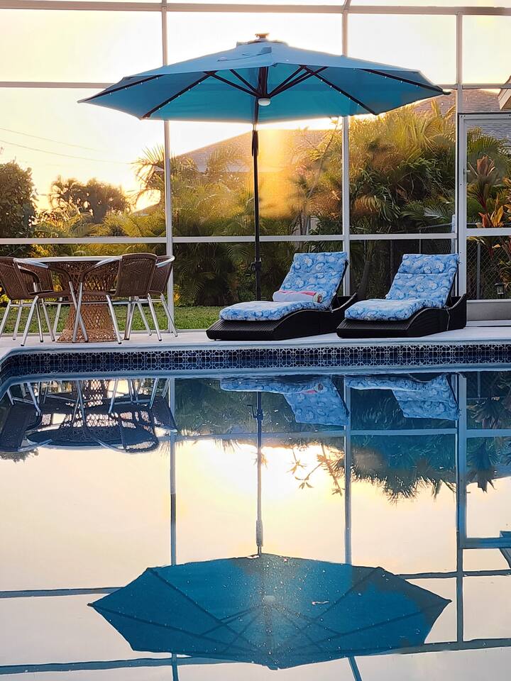 Welcome to "Feelin' Beachy" 3BR/2BA hideaway! Bask in your sunny🌞 south-facing, totally private 🌴heated pool paradise right in SE Cape Coral. We've filled it with beachy touches & everything for your laid-back escape. Minutes from Downtown Cape, shops, waterfront eats, bars and the Cape Coral Yacht Club Beach. ✈️29 mi to Punta Gorda (PGD) ✈️17 mi to SWFL Intl (RSW) 🍻2 mi to Cape Coral Ent. District 🏖️13 mi to Fort Myers Beach 🏫12 mi to Historic Downtown Fort Myers Dive in & unwind 🌊🏖️