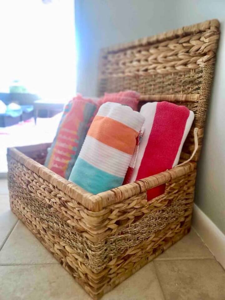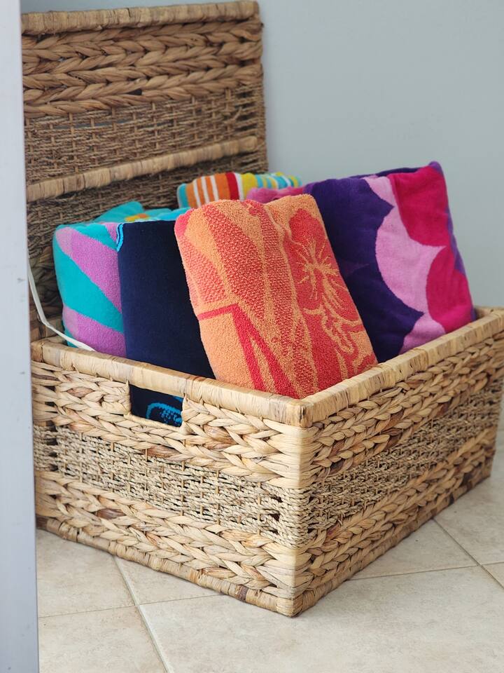 - Beach essentials Beach towels, umbrella, beach blanket, snorkeling gear