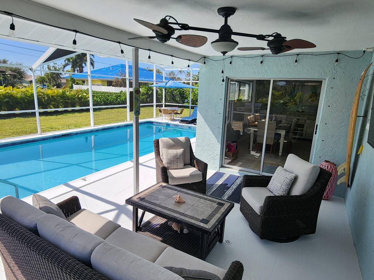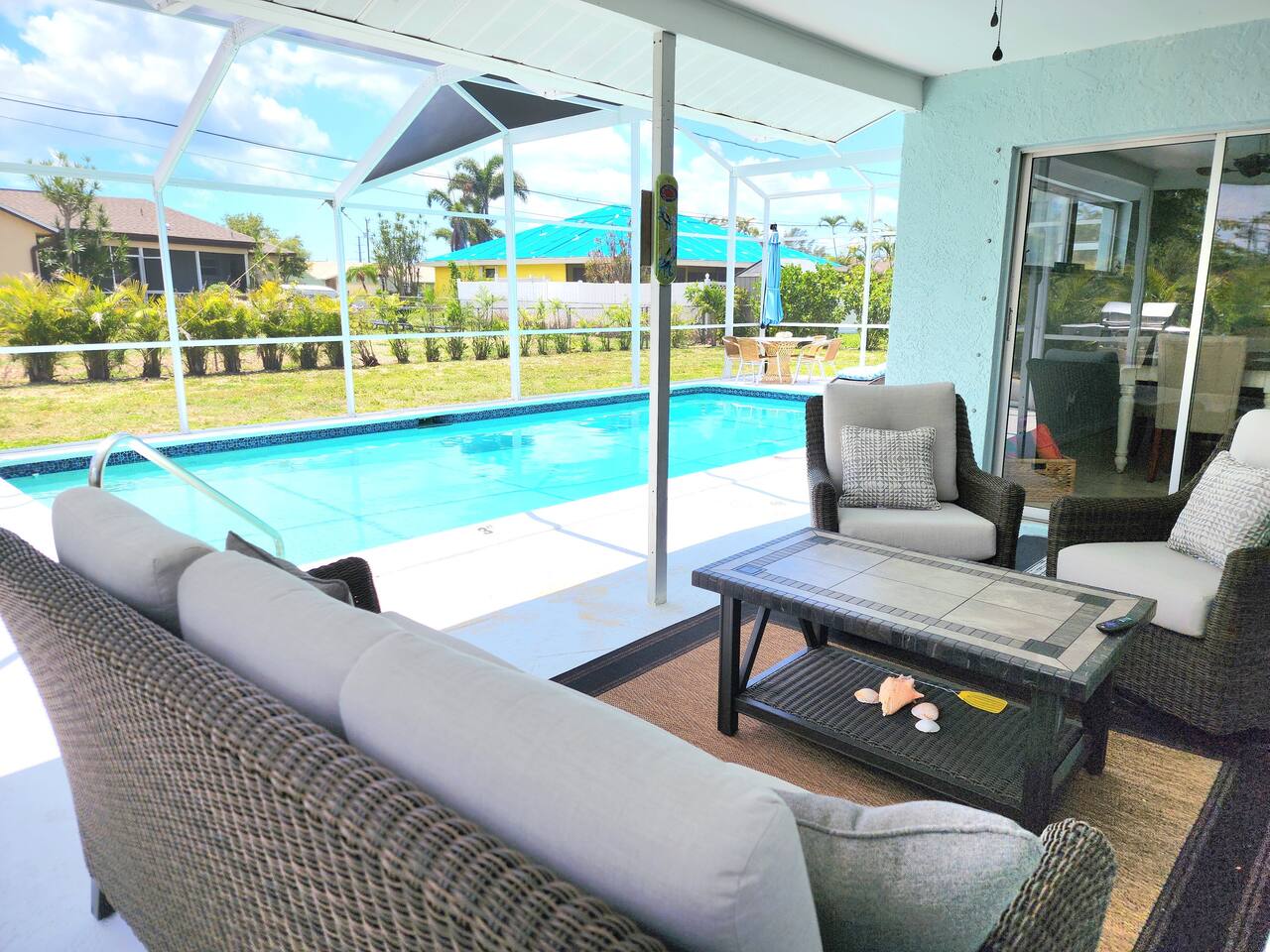 "Feelin' Beachy" is located on a quiet street with Neighbours to each side and behind the home. Cape Coral has a noise ordinance at 10:00PM and being respectful of our community and neighbors is very important to us.