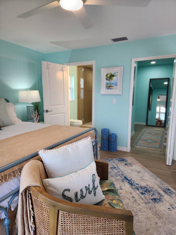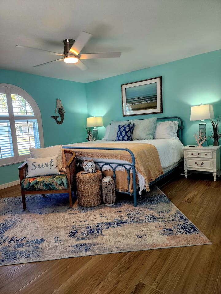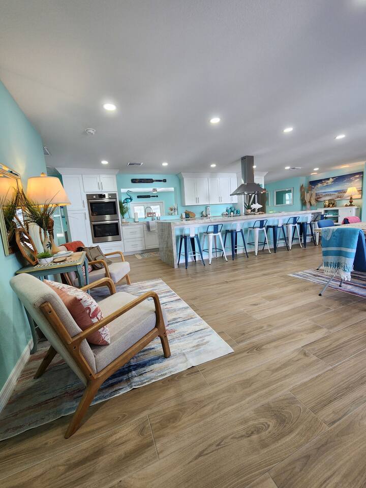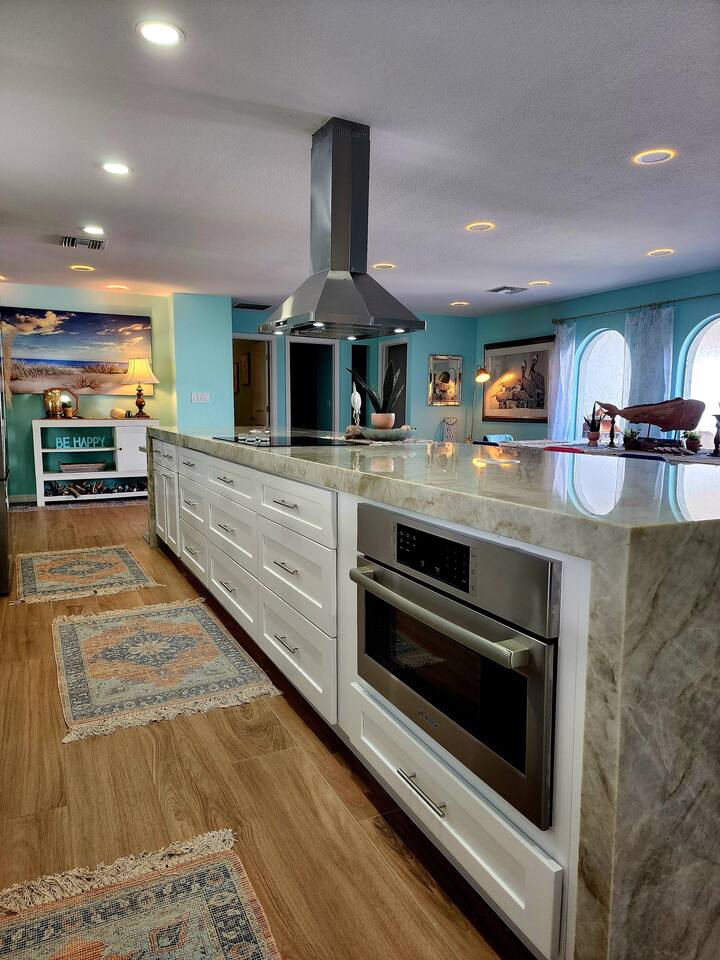 Take it easy at this unique and tranquil getaway. Stunningly renovated home on a gulf canal lot just minutes from downtown Cape Coral, offers a perfect retreat. The fully updated kitchen features a luxurious waterfall quartz island, ideal for cooking and entertaining. Enjoy the Heated Pool for sunny days and relaxation. With five elegant bedrooms, three modern baths, oversized ceiling fans, and a hot tub, this home blends comfort, style and relaxation. Experience luxury and tranquility here!