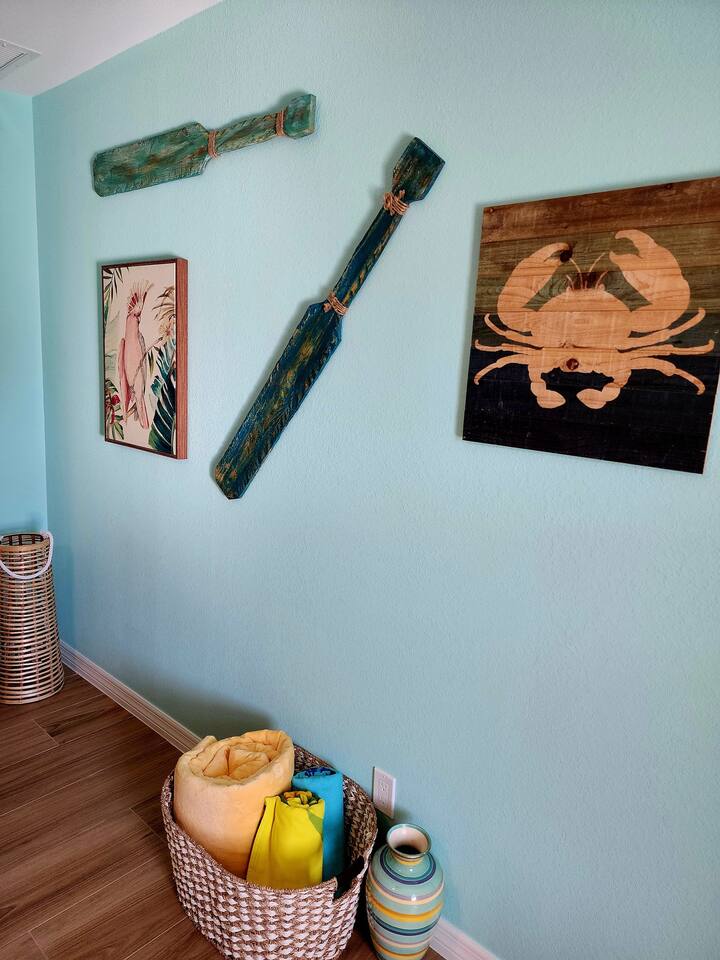 - Beach essentials Beach towels, umbrella, beach blanket, snorkeling gear